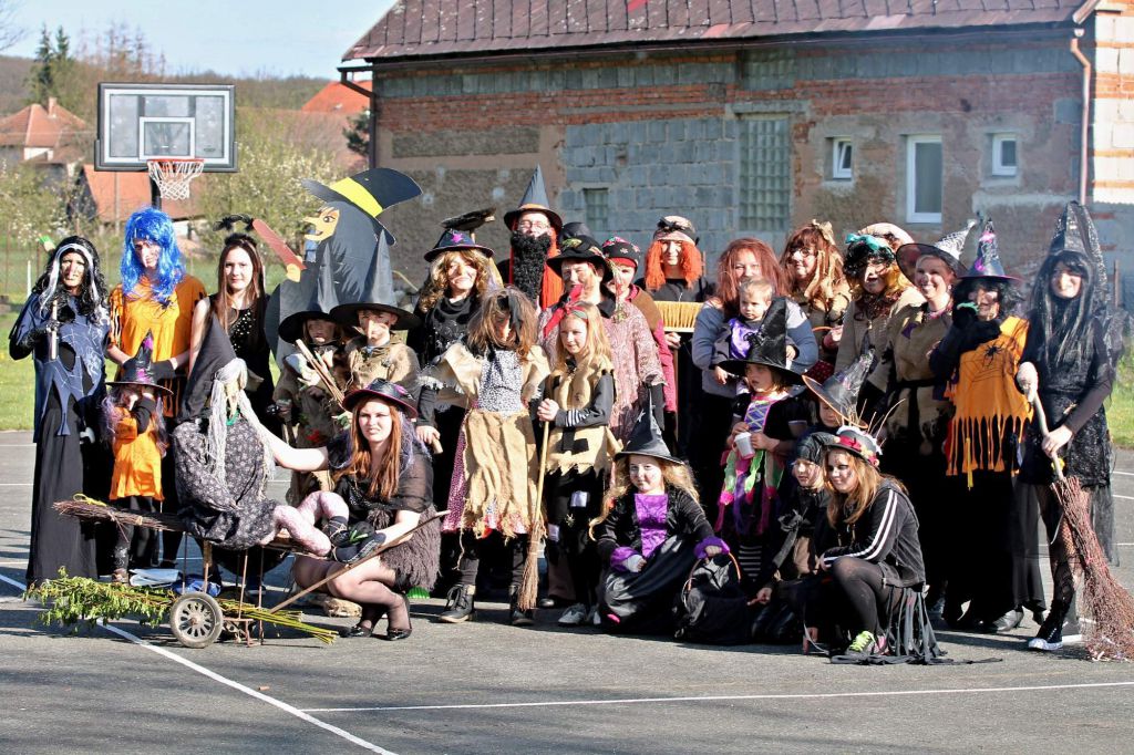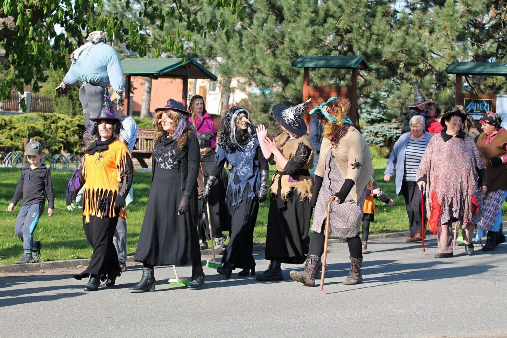 Tak jako předešlé roky, tak i letos se místní dámy, děti, slečny a také pán, mávnutím kouzelného proutku změnili na krásné čarodějnice a čaroděje. Čarodějnický pochod začínal u hasičské zbrojnice a pokračoval na místní hřiště, kde se dohrával první poločas fotbalového utkání místních mužů. I přes čarodějnické fandění a pokus rozptýlit brankáře soupeře, se nepodařilo místním vyhrát, ale to nevadí, určitě se to povede příště.