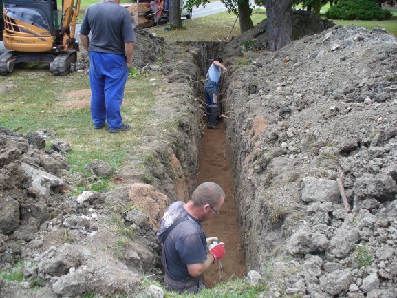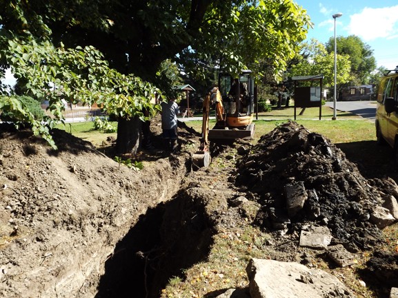 V úterý 6.9.2016 začala firma Ekolservis s výměnou kanalizačního potrubí podél požární nádrže, které bylo ucpáno prorůstajícími kořeny vzrostlého kaštanu. Pro ilustraci uvádím několik snímků z 30.4.2015 z kamerového systému, kde byl tento problém zjištěn a přesně zaměřen. Na dalších snímcích je několik záběrů z nynější výměny. Poslední dva snímky jsou ze 14 hodin dne 7.9. 2016, kdy už bylo hotovo, čisto, vše uklizeno.